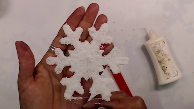 Once dried I came back with some faux snow I made using instant snow I had in my stash. I place the glue all around the snowflake and then started adding the faux snow on top.